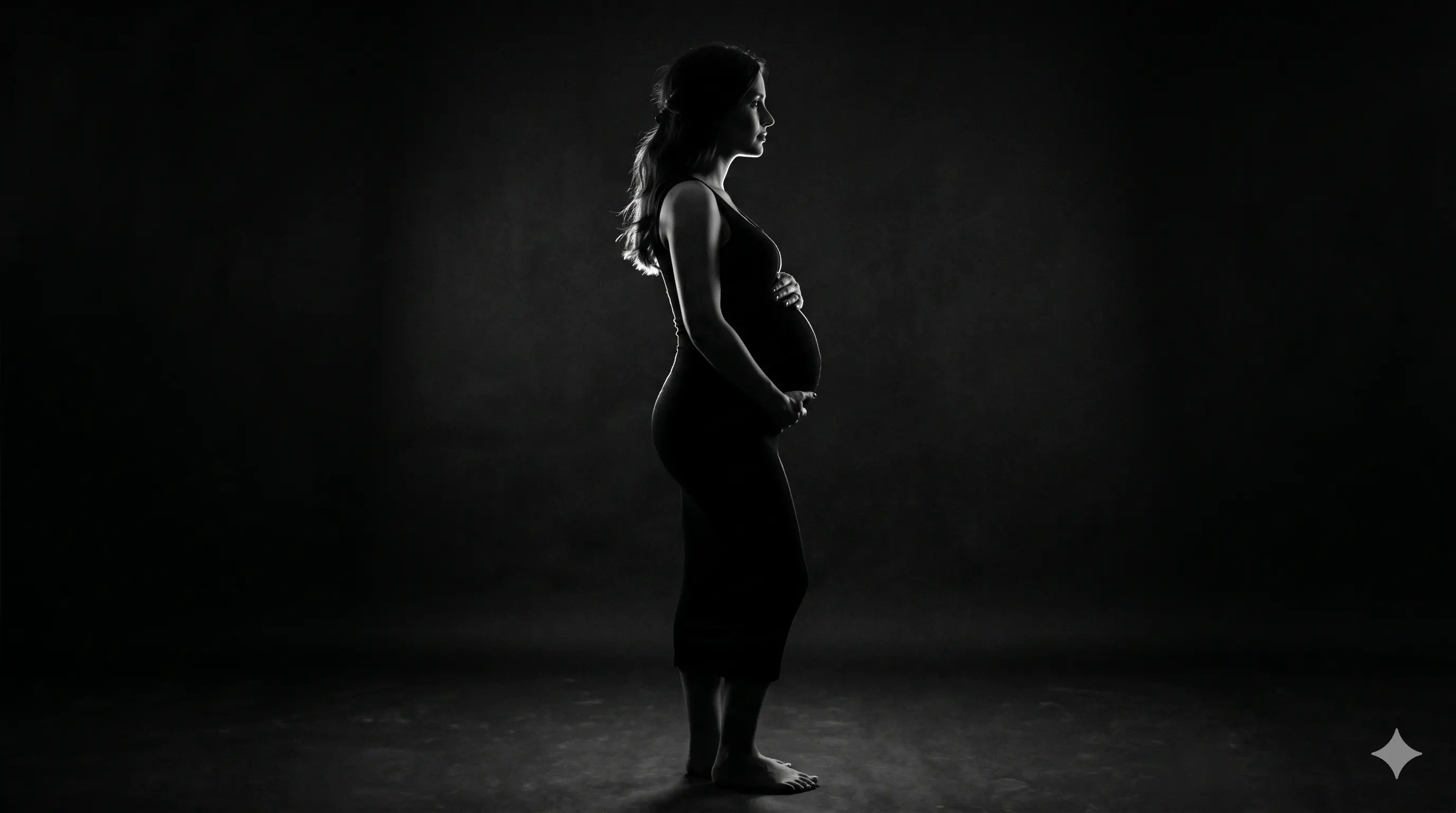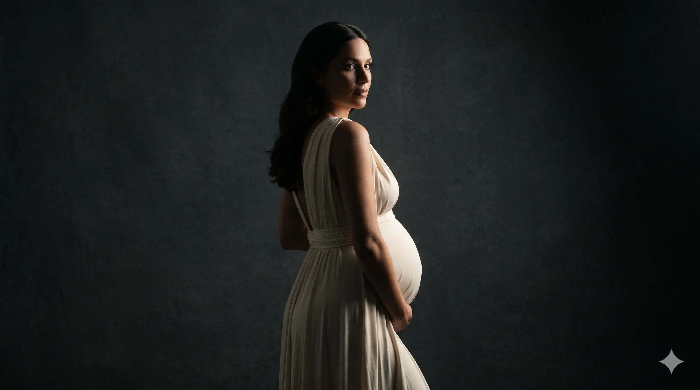 Without shadow, there is no shape. By allowing "Rim Lighting" (light that hits only the edges of your body) to do the work, we can create a "halo" effect that separates you from the background, making you look lean and statuesque regardless of your stage of pregnancy.